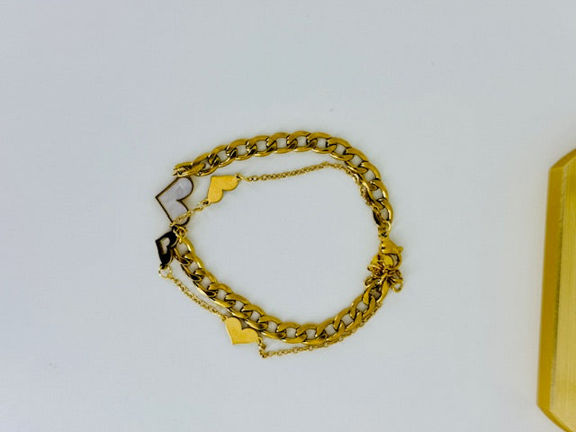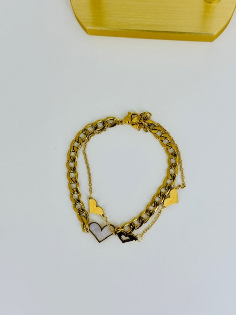 3 hearts double layer chain, elevate your accessory game with double chain bracelet featuring a delicate 3 heart charm. This statement piece combines bold layering with a subtle touch of elegance, perfect for showcasing your refined taste. Crafted for durability and style, it effortlessly complements both casual, elegant and formal looks, making it a versatile addition to your collection.