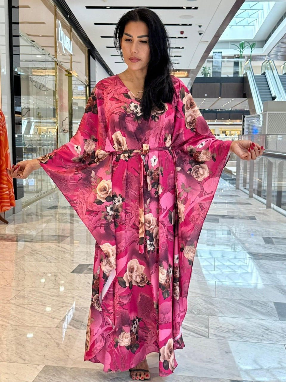 Magenta Elegant Beautiful Rosie floral lounge weekend silk summer caftan Kaftan