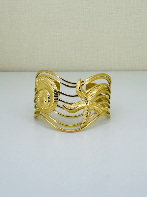 This large fashion shell element bangle is crafted from durable stainless steel, ensuring long-lasting wear while being hypoallergenic for sensitive skin. Its bold design makes it a distinctive accessory that elevates any outfit, helping you stand out confidently in any crowd. Open sky style
